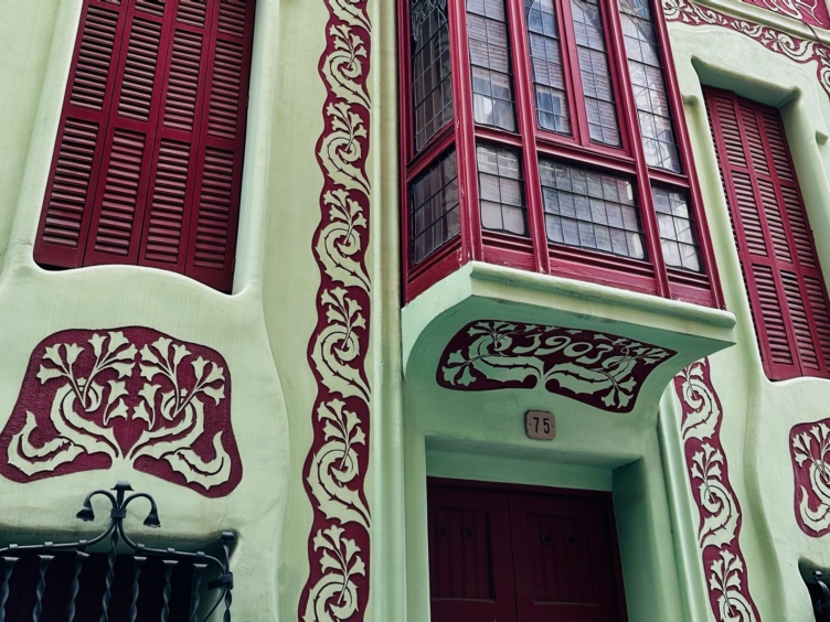 Located at 75 Carrer de Pàdua in the Sant Gervasi neighbourhood, Casa Pàdua stands out with its striking green-and-red floral façade. This vibrant exterior was created using sgraffito, a technique where contrasting layers of paint are applied and then scraped to reveal patterns beneath. The result is a living artwork: a house that feels both playful and elegant.
