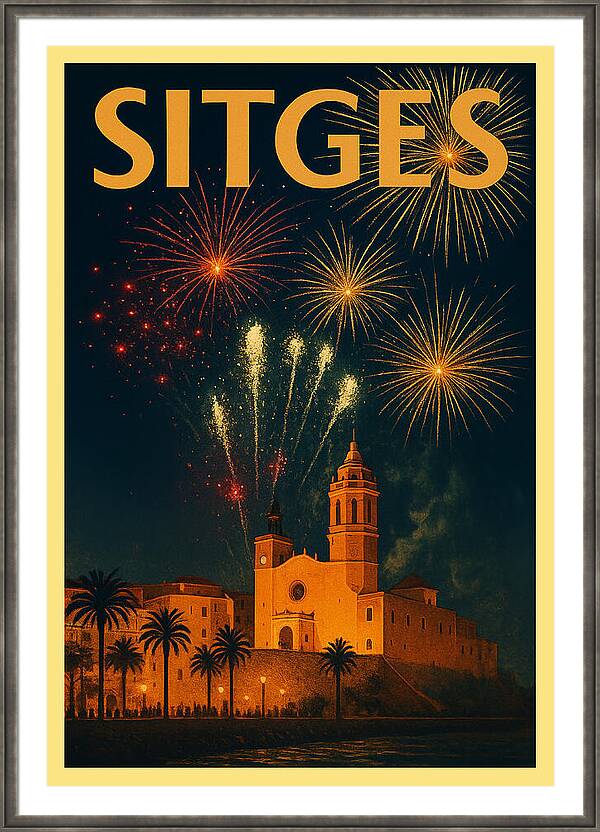 Ready to hang a piece of pure Catalan magic? This exclusive vintage art print of the Sitges Church and Fireworks is available now on Fine Art America.
