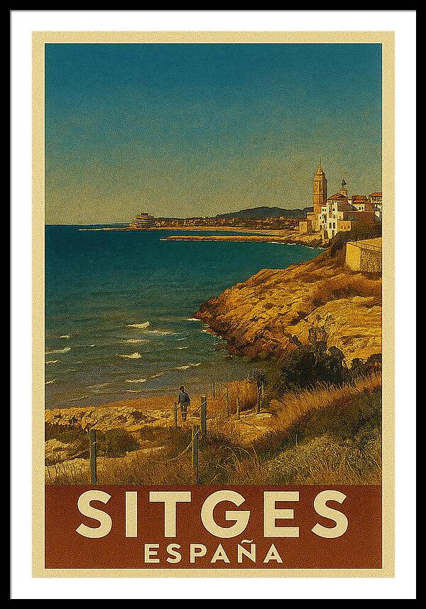 Sitges Coastal Path Vintage Travel Poster – Charming Sitges Coastline